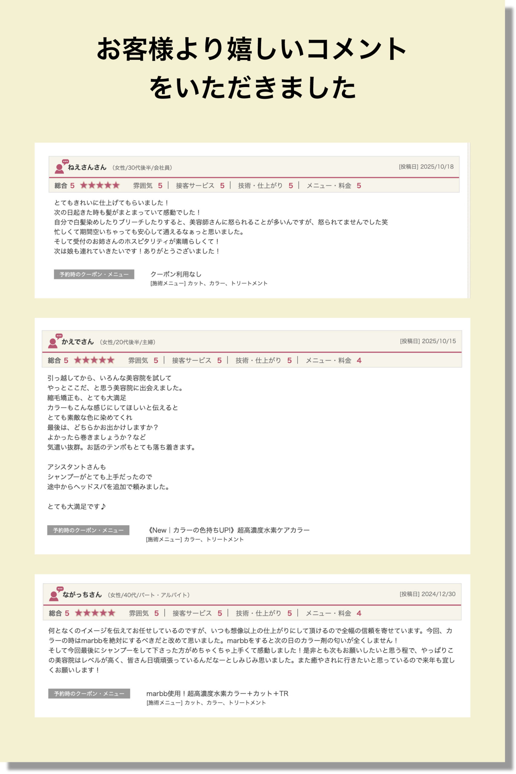 ただし、髪のダメージレベルや目的に合わせて施術順序を調整します。