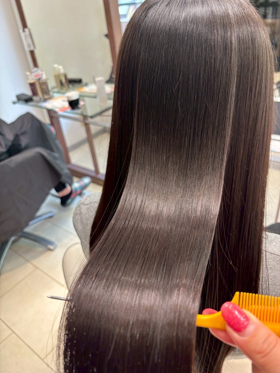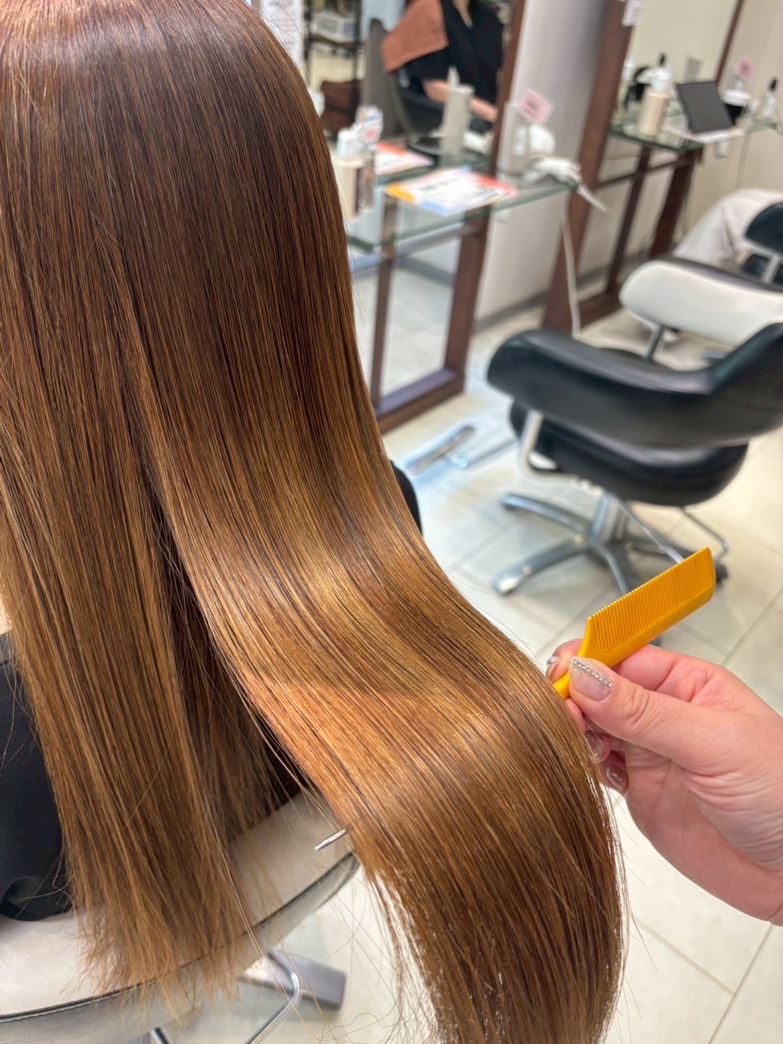 翌日以降は、保湿系シャンプーやトリートメントでケアしていただくと、ツヤと手触りがより長持ちします。